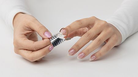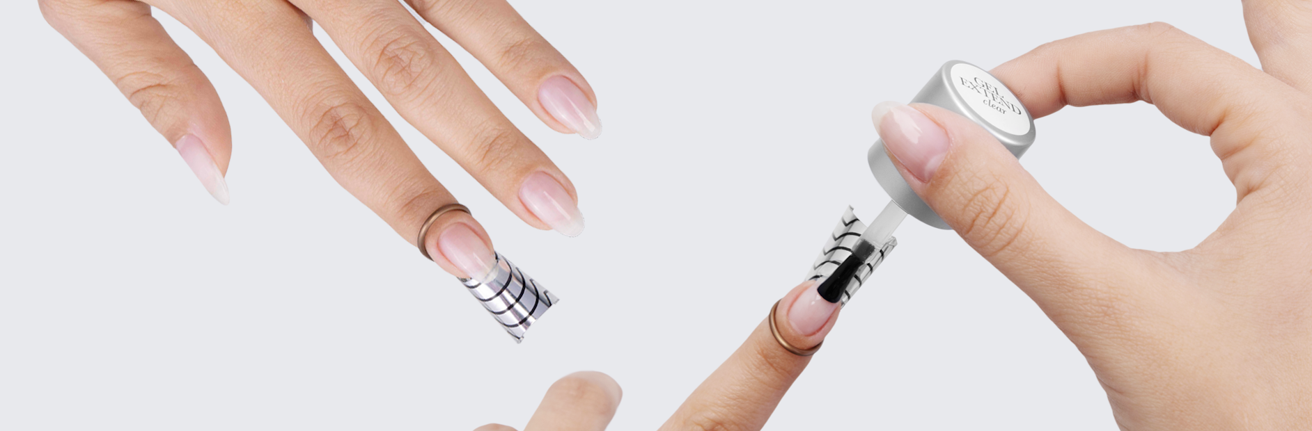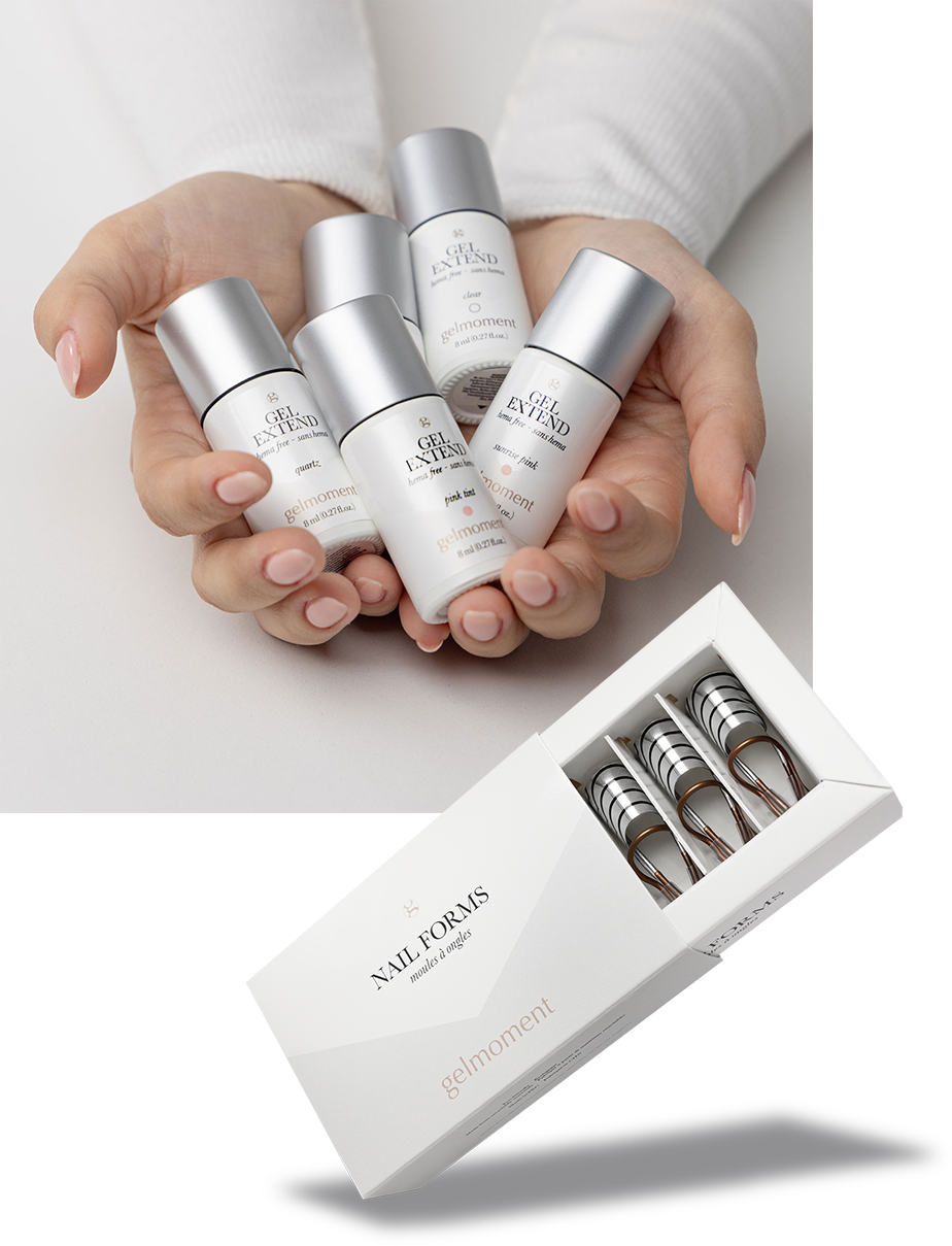 Apply a thin layer of gel extend to the natural nail, and cure using a gelmoment led lamp. Avoid thick layers to ensure the product cures properly.